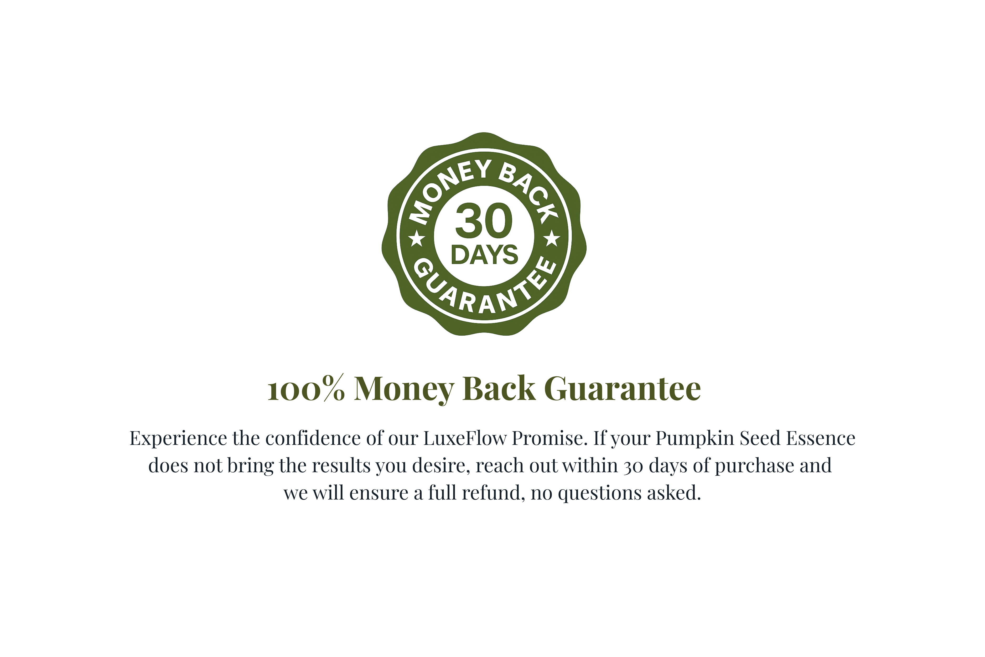 We stand by the quality of LuxeFlow Pumpkin Seed Essence. If you’re not happy for any reason, you’re covered by our 30-day money-back guarantee — no questions asked.